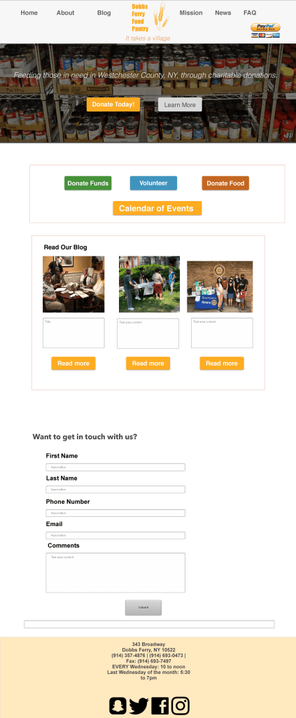 Dobbs Ferry Food Pantry (located in South Presbyterian Church in Dobbs Ferry, NY) required a complete redesign for their website to focus on gaining donations, using a more simplistic interface.