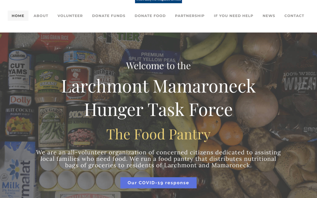 An inspiration that informed the design was The Larchmont Mamaroneck Hunger Task Force Website. I liked the hero image the block style breakdown of the site.